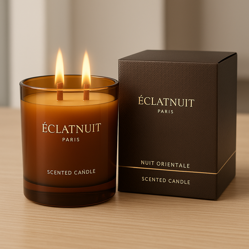 Hand-poured in limited batches, it is created exclusively from 100% organic beeswax, celebrated for its clean, smoke-free, long-lasting burn and naturally golden radiance.The fragrance unfolds like a fine composition: velvety Arabian rose at the heart, lifted by succulent peach, and softened with the timeless elegance of jasmine. Each note has been carefully balanced to create a scent that is both opulent and serene.A luxury wooden wick completes the experience, releasing a soft crackling sound reminiscent of a fireplace — a detail designed to enrich the atmosphere with warmth, intimacy, and relaxation.Éclatnuit is more than a candle; it is a statement of luxury living, transforming every moment into a ritual of elegance and tranquility.